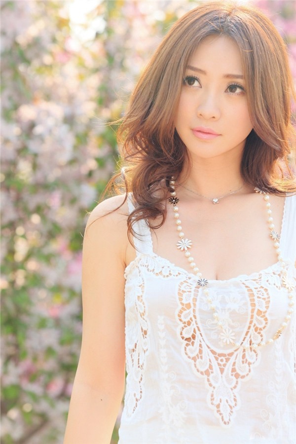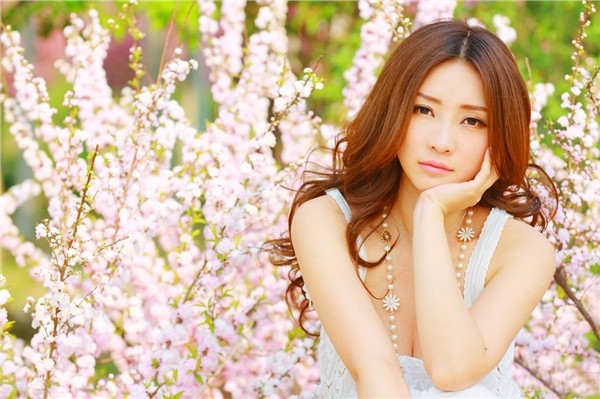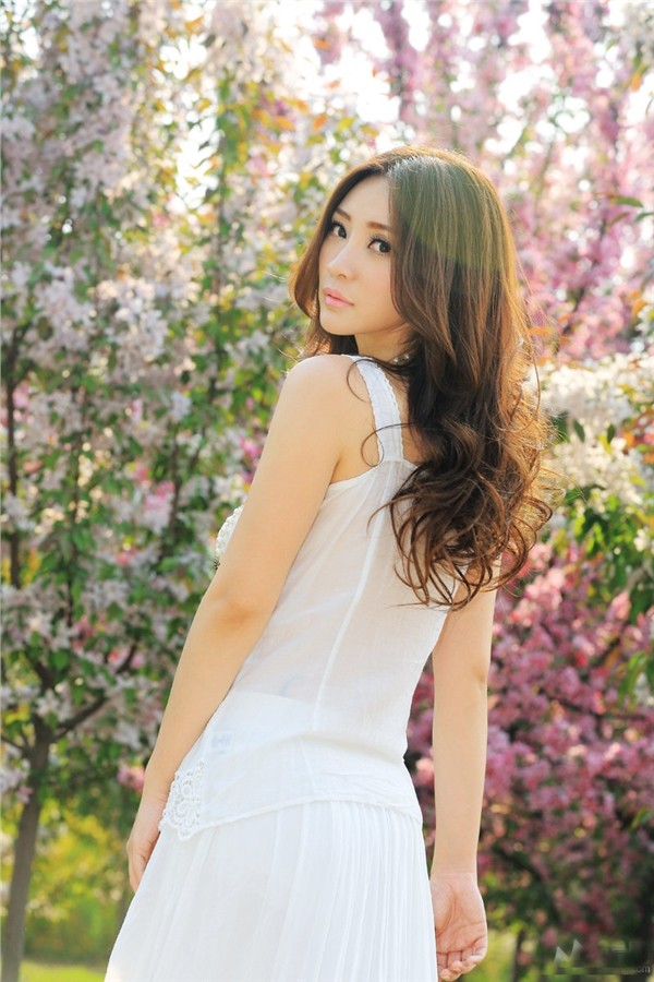 柳岩白裙漫舞桃花源 清新勾勒时光沉淀之美