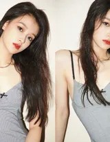 整组写真的视觉核心,首先落于服装的选择。黑色细吊带连衣短裙,堪称时尚界永不过时的经典单品。它简约却极具表现力——两根纤细的吊带轻盈地挂于肩头,恰如其分地露出锁骨与肩颈线条,这种设计既保留了适当的肌肤留白,又不会过分张扬。短裙的剪裁贴合身形,在腰间自然收束,随后微微散开的裙摆则在静态中注入一丝灵动。
