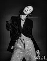 李一桐在台上的举止同样可圈可点。她时而与主持人互动,时而面向镜头微笑,每个姿态都自然大方。黑色通常给人以稳重、专业的印象,而李一桐通过灵动的表情和轻盈的体态,成功打破了深色套装的严肃感,注入属于她个人的甜美与亲和力。这种刚柔并济的呈现,正是当代独立女性形象的生动写照——既有专业自信的一面,又不失温柔魅力。